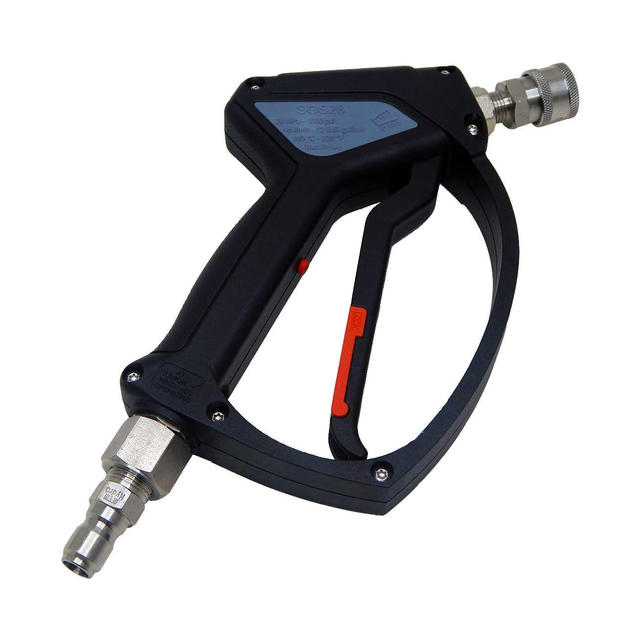 - PRESSURE WASHER GUN - SGS28 Spray Gun with stainless steel QC fittings and built-in stainless steel hose swivel to prevent tangling and twisting under pressure.